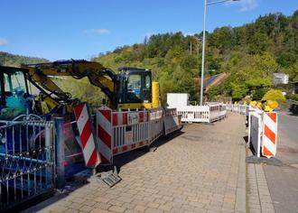 Bauarbeiten an der Kohlbrücke erfordern bis Anfang Dezember eine halbseitige Sperrung der B 39, die Spundwand zum Speyerbach muss erneuert werden