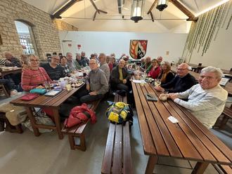 Lambrecht. (gk) Am Mittwoch, dem 8. Oktober 2025, waren bei bestem Herbstwetter 33 Wanderfreundinnen und Wanderfreunde der Lambrechter Fußball-AH unterwegs. Ab dem Bahnhof in Mußbach führte Toni Ernt die Gruppe durch die herbstlich gefärbten Weinberge hinauf zum „Königsbacher Winzer“, wo die PKW-Fahrerinnen und -Fahrer die Wandertruppe bereits erwarteten.