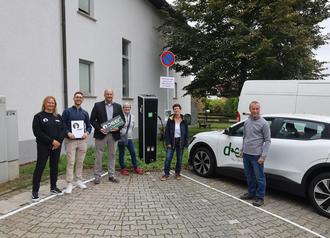 Nur wenig später wurde auch in Esthal die neue Elektroladesäule mit zwei Ladeplätzen und dem ersten E-Fahrzeug offiziell in Betrieb genommen. In der Bergstraße begrüßten Ortsbürgermeister Gernot Kuhn und die 1. Beigeordnete Gabriele Kaiser zahlreiche interessierte Bürgerinnen und Bürger.
