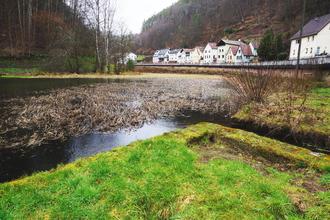 Der Gemeinderat Elmstein traf eine Entscheidung über die Zukunft des Möllbachweihers samt der geforderten Fischaufstiegshilfe. Grundlage war eine Planung, die bereits Anfang des Jahres in drei Varianten vorgestellt worden war. Bei zwei Enthaltungen aus der SWG-Fraktion entschied sich der Gemeinderat für die Planvariante drei, die als Grundlage für einen Förderantrag gelten soll. Ortsbürgermeister Rene Verdaasdonk (SPD) rechnet mit einer Förderung von 90 bis 95 Prozent. Zum Zeitpunkt der Entwurfsplanung 2022 bezifferte Planer Thomas Wamsganz einen Kostenrahmen von 450.000 bis 475.000 Euro.
