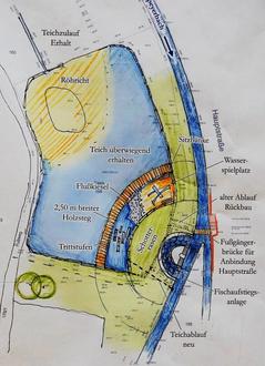 Der Gemeinderat Elmstein hat mehrheitlich die Entwurfsvariante drei gewählt, die nun durch das Ingenieurbüro genehmigungsreif ausgearbeitet werden wird. Der Entwurf stellt einen Kompromiss zwischen dem Erhalt des Möllbachweihers, dem Einbau einer Fischaufstiegshilfe und der Steigerung des Erlebniswertes des Weihers dar.
