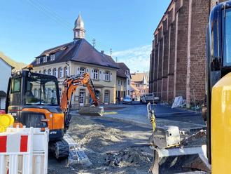 Lambrecht. (ve) Die Bauarbeiten in der Marktstraße in Lambrecht gehen flott voran. Momentan werden die Wasserrinnen auf beiden Seiten der Markstraße aufgemauert, die Fahrfläche wird verdichtet und aufgepflastert. Somit entsteht eine optische Einheit rund um die ehem. Klosterkirche. In einem weiteren Arbeitsschritt wird die Fläche um die Friedenseiche und zum Eingangsportal der Kirche gestaltet werden. Leider kann in diesem Jahr der „Märchenhafte Adventsmarkt“ nicht um die Kirche ausgerichtet werden, weil Anpassungs- und Schlussarbeiten noch zu erledigen sind. Als Alternative wird ein kleinerer Adventsmarkt wieder auf dem Friedrich-Ebert-Platz am ersten Advents-Wochenende stattfinden.
