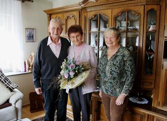 Die Eiserne Hochzeit feiert die Familie im kleinen Kreis zu Hause. Gäste aus Familie und Nachbarschaft kamen vorbei, um ihre Glückwünsche persönlich zu überbringen. Auch seitens der Verbandsgemeinde gratulierte die Erste Beigeordnete Sybille Höchel, die dem Jubelpaar am Morgen herzlich gratulierte und einen schönen Blumenstrauß überreichte.