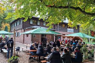 Abschluß in der vereinseigenen Lambertskreuzhütte. Es war noch ordentlich Betrieb