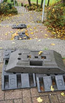 Das Mittelgeländer über mehrere Stufen des Treppenweges vom Gemeinschaftshaus zur Gartenstraße war durchgerostet und wurde mittlerweile abgebaut. Fußgänger müssen seitdem ohne die Sicherheit eines Geländers die Treppen begehen