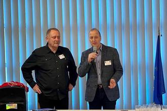 Herzliches Wiedersehen – Bürgermeister Olivier Martet (Blainville-sur-l’Eau) und Andreas Ohler (Lambrecht)