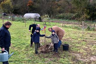 Apfel- und Feigenbaum gepflanzt als Sinnbild für Freundschaft, Wachstum und Beständigkeit