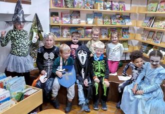 Einige der Gespenster, die an Halloween durch Stadt zogen und in der Bücherei eine gruselige Party feierten