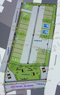 Der „abgespeckte“ Plan des Parkplatzes an der Wallonenstraße mit 18 Parkplätzen, einer grünen Oase mit Spielgeräten sowie dem Teilstück der Vereinsstraße, die als Umleitungsmöglichkeit erhalten bleibt. (Plan Deubert)