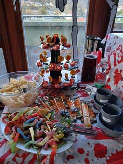 Die Blutkonserven (roter Traubensaft) gingen leider aus, aber notgedrungen konnten die Gespensterchips und Anakondas (Fruchtgummi) auch mit Blutverdünner (Wasser) runtergespült werden.