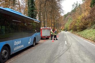 Vor Ort stellte sich heraus, dass bei einem Bus eine Kühlmittelleitung geplatzt war. Das Kühlmittel war bereits vollständig ausgelaufen. Die Einsatzkräfte streuten die betroffene Fläche mit Bindemittel ab und kontrollierten die Strecke, auf der der Bus zum Stehen gekommen war. Um ein weiteres Austreten von Flüssigkeit zu verhindern, wurde eine Auffangwanne unter dem Fahrzeug platziert.