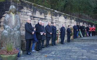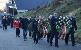 Gemeinsamer Gang von der Friedhofhalle zum Ehrenmal mit der Kranzniederlegung.