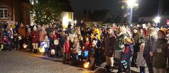 In großer Zahl versammelten sich die Kinder der drei Kindergärten und der Grundschule mit ihren leuchtenden Laternen auf dem Friedrich-Ebert-Platz.