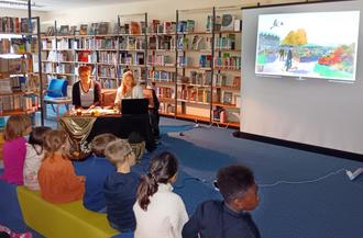 Die Bilder der Geschichte von der kleinen Hexe wurden wie im Kino an die Leinwand projiziert und Sonja Clemens und Kathrin Schulz lasen das Bilderbuch sehr lebhaft vor. Die Kinder hatten großen Spaß und staunten über das Erlebnis. „In einem kleinen Häuschen, tief im Wald, da wohnt die kleine Hexe mit ihrem Raben Abraxas. Jeden Tag übt sie fleißig für die große Hexenprüfung. Aber das Hexen ist nun mal keine einfache Sache. An diesem Morgen ist alles besonders verflixt: Erst regnet es Buttermilch und dann zaubert die kleine Hexe auch noch ihren Besen entzwei! Um einen neuen zu kaufen, macht sich die kleine Hexe auf den Weg in die Stadt - und sorgt dort für jede Menge Trubel...