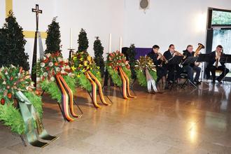 Mit zahlreichen Kränzen wurde im Rahmen der zentralen Veranstaltung in Lambrecht den Opfern von Krieg und Gewalt am Volkstrauertag gedacht