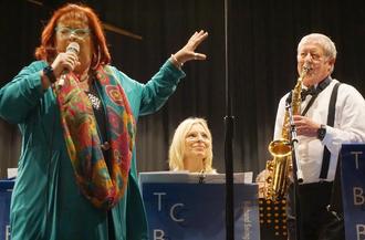 Klaus Brick beim grandiosen Gastspiel in Lambrecht mit der stimmgewaltigen TC-BigBand-Sängerin Angelika Rothert