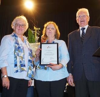 Im Namen des Chorverbandes Pfalz und dem Sängerkreis Vorderpfalz verlieh Roland Stahler der Sängerin Christel Houy (Mitte) die Silberne Ehrennadel für 25jähriges Singen im Chor. Ingrid Thomas gratulierte für den Gesangverein 1846 Lambrecht.