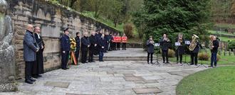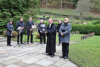 Das Gebet zur Totenehrung sprach Pfarrer Frank Wiehler. Das musikalische Begleitprogramm der Gedenkfeier wurde vom K&K Blechbläserquintett gestaltet.