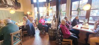 Nach der Besichtigung führte der Weg zum Zunfthaus aus dem Jahr 1607 und schließlich zum ältesten Haus der Stadt. In der Bürgerstube warteten bereits die übrigen Teilnehmer, und gemeinsam wurde die Führung mit Applaus für Gunter Weber beendet. Elke Weller bedankte sich herzlich bei den Ortsgruppenbetreuern, bevor die Gruppe mit einem Geburtstagsständchen im Kanon und weiteren Liedern, deren Texte von Weller verteilt wurden, den Tag musikalisch ausklingen ließ.