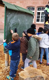 Erste Schulversuche galten auch der Tafel des grünen Klassenzimmers.