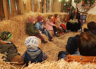 Die Märchenfee las in der rustikal und anheimelnd gestalteten Ecke des Adventsmarktes den Kindern die schönsten Märchen vor.