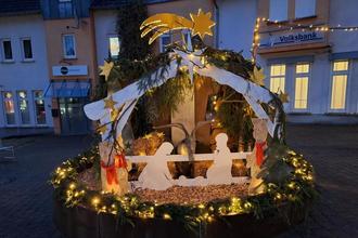 Lambrecht. (ck) Die FWG Lambrecht & friends haben auch in diesem Jahr den Gäsbock-Brunnen auf dem Herzog-Otto-Platz in Lambrecht in einen Winterbrunnen verwandelt. Bernhard Pfeifer hat nach den kreativen Ideen von Susanne Klumpp die Krippe in Handarbeit hergestellt und den Gegebenheiten des Brunnens angepasst. Dargestellt wird die Geschichte im Stall von Bethlehem.