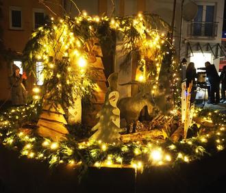 Der gestaltete Winterbrunnen, unter dessen Dekoration sich der Geißbock-Brunnen auf dem Herzog-Otto-Platz befindet, wurde zum ersten Advent der Öffentlichkeit im Lichterglanz vorgestellt.
