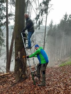 Nistkastenreinigungsteam im Einsatz: Hans Jürgen Langohr und Walter Klein