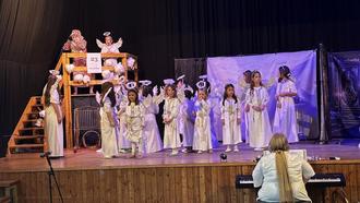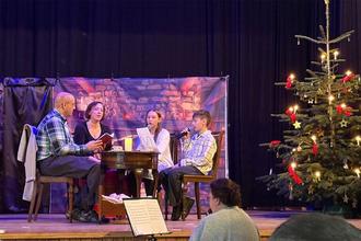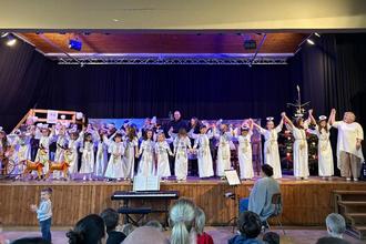 Das Besondere an der Aufführung war die Mitwirkung von Teenagern und Erwachsenen des Jungen Chores „Vocal Cords“, die gemeinsam mit den jungen Sängerinnen und Sängern der „Chornichons“ eine lebendige und abwechslungsreiche Inszenierung auf die Bühne brachten. Musikalisch begleitet wurde die Aufführung von Dorina Schmidt am Klavier und Beate Kuhn an der Klarinette.