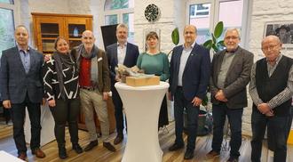 Mit einem besonderen Dank verabschiedete Verbandsbürgermeister Gernot Kuhn den AWO-Einrichtungsleiter, wobei er an die zahlreichen Kontakte mit der Verbandsgemeinde und die gute Abstimmung von Maßnahmen während der Pandemie erinnerte. Stadtbürgermeister Karl-Günter Müller berichtete, dass zu allen Veranstaltungen im Seniorenhaus immer die Bevölkerung eingeladen war und im Gegenzug die Bewohner des Awo-Hauses gerne Gäste bei städtischen Veranstaltungen wie Geißbockspiel oder Kerwe waren. Zum Abschied überreichte er die Broschüre über die Lambrechter Grenzsteine in der Hoffnung, dass er bei der Lektüre sich gerne an Lambrecht erinnert. Im Namen des SPD-Ortsvereines dankte Günther Semmelsberger und erinnerte, dass seine Partei im Sandsteinhaus tagen durfte und er erwähnte die „rote Bank“ der SPD, die im Garten des AWO-Seniorenhauses Aufstellung gefunden hatte. Für den Förderverein des Seniorenhauses lobte Andreas Ohler das hervorragende Engagement des scheidenden Einrichtungsleiters und er hoffe, dass die Zusammenarbeit mit seiner Nachfolgerin in ähnlichem Maße erfolgen kann. Dem Dank schloss sich die Belegschaft des Hauses an, für die Bewohner sprach Helga Schöler Dankesworte.