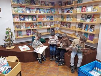 Nach dem Vorlesen verteilten sich die Kinder in allen Ecken der Kinderbuchabteilung, um sich die verschiedenen Bücher, Spiele und Tiptoi anzuschauen. Frau Kubatta und Frau Glass standen zur Seite, um die zahlreichen Medien, die ausgeliehen werden können, zu erklären.