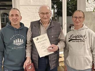 Für seine 40jährige Mitgliedschaft besonders geehrte wurde Klaus Liebrich durch den Vorsitzenden Peter Dörrzapf (links) und seinen Stellvertreter Heiko Buchmann (rechts).