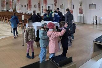 Lambrecht. (MK) Im Rahmen der Erstkommunionvorbereitung lud unsere Messdienergruppe am Samstag, dem 24.01. die diesjährigen Kommunionkinder zu einer Schnuppermessdienerstunde ein. Nach einer Vorstellungsrunde mit einem witzigen Klopapier-Spiel ging es dann vom alten Pfarrhaus in Lambrecht hinüber in die große Pfarrkirche. Dort erklärte ihnen Pfarrer Christoph Herr zunächst den besonderen Ort der Sakristei und was sich in den einzelnen Schränken verbirgt. Danach durften die Kinder in der ganzen Kirche ausschwärmen und diese aus allen möglichen Perspektiven erkunden. Besonders beliebt war dabei die Empore mit der großen Kirchenorgel. Hierzu hatten die älteren Messdiener eigens ein kurzweiliges Quiz vorbereitet. Mit dabei war natürlich auch "Egon", das Maskottchen unserer Messdienergruppe. Diese würden sich sehr über weiteren Zuwachs aus den Reihen der Erstkommunionkinder freuen. Über den Dienst bei den Gottesdiensten hinaus gestalten die Kinder und Jugendlichen jedes Jahr die Osterkerzen für die Kirchen in der ganzen Pfarrei. Außerdem finden über das Jahr verteilt auch mehrere Gemeinschaftsaktionen sowie auch in diesem Jahr in der letzten Sommerferienwoche eine große Messdiener/innenfahrt nach Bayern statt. Am Sonntag, dem 1. März, feiern wir in unserer Pfarrei einen Familiensonntag. Im Gottesdienst um 10.30 Uhr in der (beheizten) katholischen Kirche in Lambrecht stellen sich unsere Erstkommunionkinder der Gemeinde vor. Anschließend bieten die Messdiener/innen Waffeln, Kinderpunsch und Glühwein an. Der Erlös ist für die Ministrantenarbeit der Pfarrei bestimmt. Hierzu ergeht herzliche Einladung!