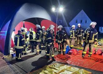 Der Feuerwehr-Großeinsatz verlief generalstabsmäßig, die 80 Einsatzkräfte der Feuerwehr waren abwechselnd im Einsatz und wurden durch die Schnelleinsatzgruppe Verpflegung betreut.