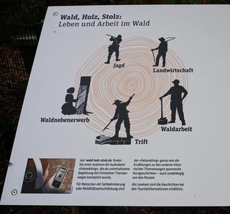 Eine umfangreiche Beschilderung in der barrierefreien Walter Bernius-Anlage informiert über die Historie der Waldgemeinde Elmstein.