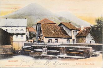 Lambrecht. Die wunderschöne Ansichtskarte mit dem Titel „Partie am Speyerbach“ stammt aus der Sammlung von Udo Grimm. Nach meinen Recherchen wurde die Brücke einfach „Speyerbachbrücke“ oder schlicht „Brücke“ genannt. 1929 wurde sie zusammen mit der alten Walkmühle abgerissen und neu gebaut. Die neue Brücke erhielt den Namen „Friedrich-Ebert-Brücke“.