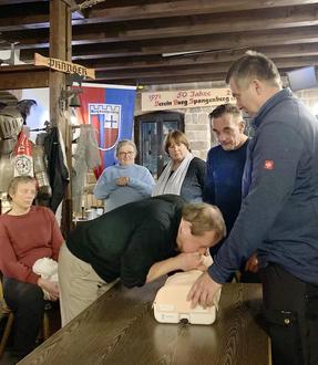 Am 1 Dezember trafen sich Ehrenamtliche mit Dr. Marc Schlez in der Burgschänke der Burg Spangenberg. Der Kinderarzt aus Neustadt hat einen Erste-Hilfe-Kasten und einen Defibrillator gespendet. Das Angebot einer Einweisung für den Notfall wurde dankbar angenommen. Die wichtigsten Handgriffe für eine Reanimation konnten geübt werden und alle gewannen die Sicherheit, im Notfall helfen zu können. Der automatisierte externe Defibrillator (AED) auf Burg Spangenberg kann lebensrettend sein, wenn bei einer Person plötzlich lebensbedrohliche Herzrhythmusstörungen auftreten. In diesem Fall pumpt das Herz nicht effektiv und der Körper wird nicht mehr mit ausreichend Sauerstoff versorgt. Ein Herzstillstand ist bereits eingetreten. Der AED ist so konzipiert, dass er in einer Notfallsituation problemlos von Laien eingesetzt werden kann, bevor professionelle Hilfe vor Ort ist.