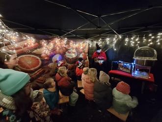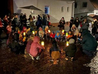 Die Adventsfenster zum 2. Advent standen unter dem Motto "Lichterzauber". Das Kita-Team freute sich sehr, dass sich so viele Neidenfelser trotz Regenwetter auf den Weg zum Bürgerhaus gemacht hatten, um den Lichterzauber mit zu erleben. Erste Station war die evangelische Kirche, in der Pfarrer Wiehler mit einer Lichtergeschichte wartete und alle die schön dekorierte Krippe bestaunen konnten. Am nächsten Adventsfenster bei Familie Gauweiler durften die Kinder ein weihnachtliches Mandala aus Tannenzweigen, Zapfen, Perlenketten und natürlich Kerzengläsern legen. Das Ergebnis war ganz hübsch anzusehen. Zur Belohnung gab es für alle einen Schokonikolaus.