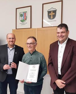Karl Heinz Kaiser (Mitte) wurde für 40jährige Mitgliedschaft in der CDU geehrt. Er gehörte 20 Jahre dem Gemeinderat an und war 15 Jahre Beigeordneter. Links Bürgermeister Gernot Kuhn, rechts CDU-Gemeindeverbandsvorsitzender Ralf Kretner.