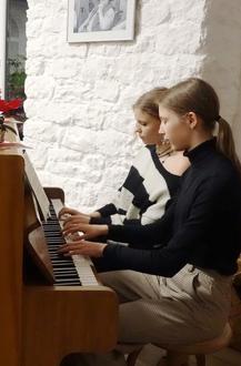 Am Klavier links Lina Möller, rechts Ingrid-Marie Stecher