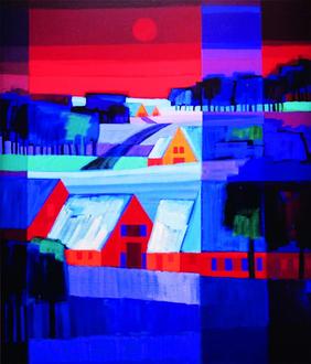 Der rote Himmel, die rote Sonne wirken so intensiv, dass sie als Abendrot wahrgenommen werden können. Die Felder und Flure wirken plötzlich einladend. Die roten Farben in der Mitte vermitteln Wärme und erinnern an den Stall von Bethlehem, in dem Mensch und Tier sich bergen konnten und das Wunder der Menschwerdung Gottes Ereignis werden konnte. Man möchte hineingehen in ein jedes dieser Häuser und staunen über das, was da geschehen ist. Dass Gott (jüdischer) Mensch wurde - Jesus in einer Krippe liegend und vom Atem der Tiere gewärmt.