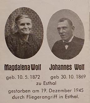 Unter den 4 Toten im Gässel waren meine beiden Großeltern Magdalena und Johannes Wolf sowie die Kinder Gertrud und Wolfgang Bleh aus der Verwandschaft
