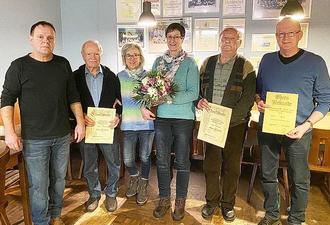 Ehrungen beim SV Iggelbach: Von links nach rechts 1. Vorsitzender Frank Ackel und die Geehrten Armin Burkhard, Juliane Güllich, Elvira Spill, Hans Schneider, Lucien Spill.