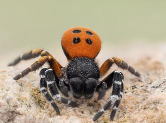 Die Rote Röhrenspinne (Eresus kollari) ist eine auffällige, seltene Spinnenart aus der Familie der Röhrenspinnen (Eresidae). Besonders markant sind die Männchen mit ihrem leuchtend roten Hinterleib und den schwarzen Punkten, während die Weibchen meist schwarz und unauffälliger sind. Die Tiere leben in selbst gegrabenen Röhren in trockenen, sonnigen Gebieten wie Heide- und Steppenlandschaften. Obwohl die Art in Europa verbreitet ist, gilt sie als selten und steht in vielen Regionen unter Schutz.