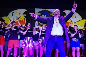 Traditionell erklang die fast nicht enden wollende Fasnachts-Hymne „Doch wir, wir bleiben hier …“. Es versammelten sich singend und schunkelnd alle Aktiven auf der Bühne und lagen sich freudig in den Armen, denn es war ihnen gelungen, eine perfekt durchgeführte Prunksitzung nach der Corona-Unterbrechung wieder neu gestartet zu haben. So war Präsident Markus Kern voll des Lobes über das Engagement seiner Aktiven sowie den Helferinnen und Helfern hinter der Bühne, denn alle hätten viel Herzblut in diesen fasnachtlichen Neustart investiert. Gleichmaßen dankte er seinem „tollen“ Publikum, das den Funken der Narretei und des Frohsinns gerne aufgenommen und ausgelebt hatte.