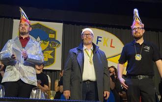 Das Triumvirat der Lambrechter Gäsböck: Vize-Sitzungspräsident Maximilian Henrich, Sitzungspräsident Markus Kern und geschäftsführender Präsident Tobias Pfeifer (von links).