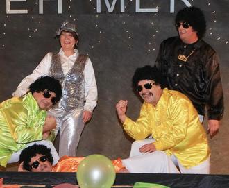Das (gemischte) Männerballett entführte das Publikum mit seinem Auftritt in die Discozeit zurück. Wer kennt Ilja Richter nicht mit seiner Sendung Disco und dem Spruch, „Licht aus – Spot an“. Dementsprechend in Schale geworfen, Glitzerhemden und Schlaghosen, wirbelten die Herren über die Bühne. Ohne Zugabe durfte das Männerballett die Bühne nicht verlassen. Trainerin Nicole sprang kurzfristig für den erkrankten Werner ein.