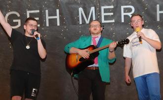 Die jungen Damen der verschiedenen Großen Garden wie die Lila Funken aus Weidenthal, die Große Garde des ASV Esthal sowie die Große Garde des SV Iggelbach sorgten mit ihren Gardetänzen für Begeisterung und ausgelassene Stimmung und waren somit Glanzlichter des Abends. Die Spritzensingers, bestehend aus Marvin Moser, Marc Hegen an der Gitarre und Lukas Singer, lieferten einen Liveauftritt ab, der profiverdächtig war. Mit den Liedern, Lewwerworschd, Pfalzlied und Country Roads als Zugabe brachten sie den Saal zum Brodeln.