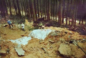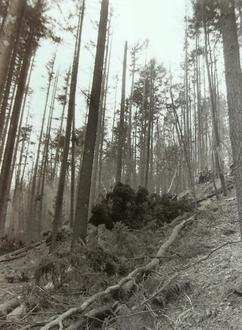 Abgerissene Baumwipfel, ein tiefer Krater, brennende Maschinenteile und Äste zeigten den Weg zur Absturzstelle am Bierenberg bei Iggelbach.