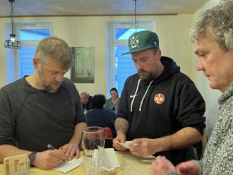 Marco Leising, Daniel Kölsch und Horst Hook beim Auszählen der Stimmen bei der Wahl zur SWG-Vorstandschaft.